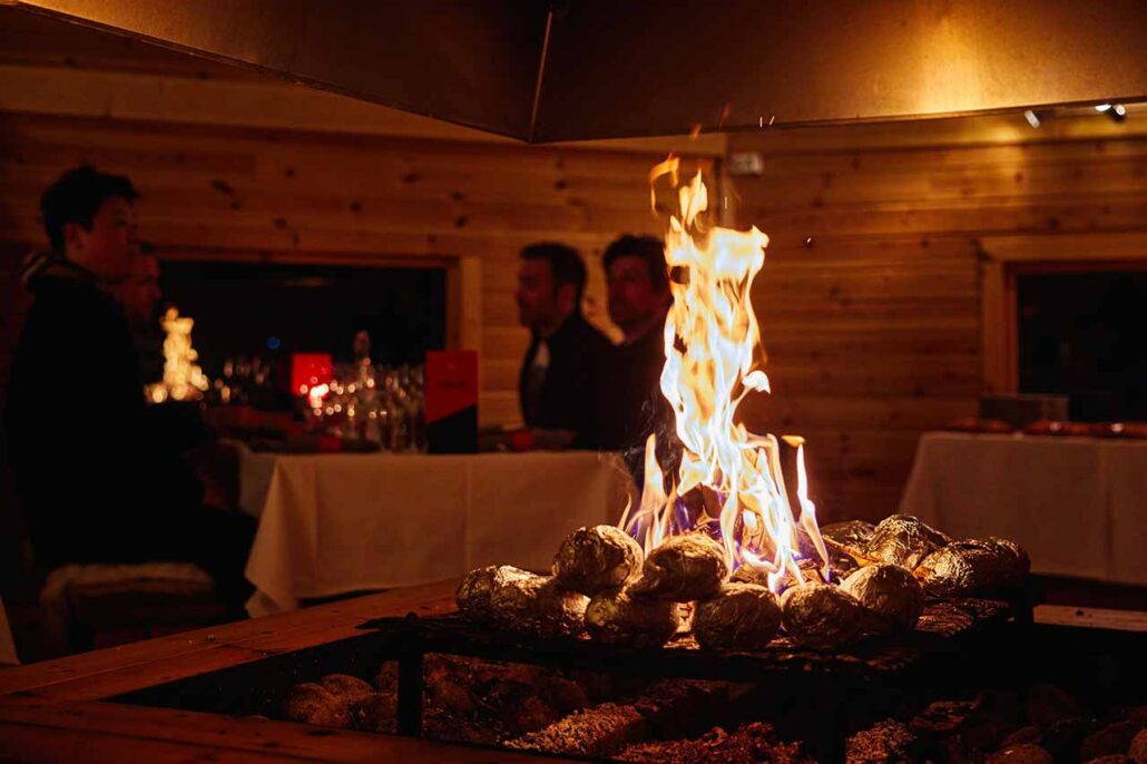 In un ristorante ricavato all’interno di una cabina realizzata completamente in legno gli ospiti hanno potuto assaggiare un tipico barbeque locale riscaldati dal fuoco del camino.