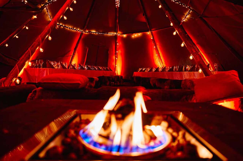 Cena in una teepee tradizionale