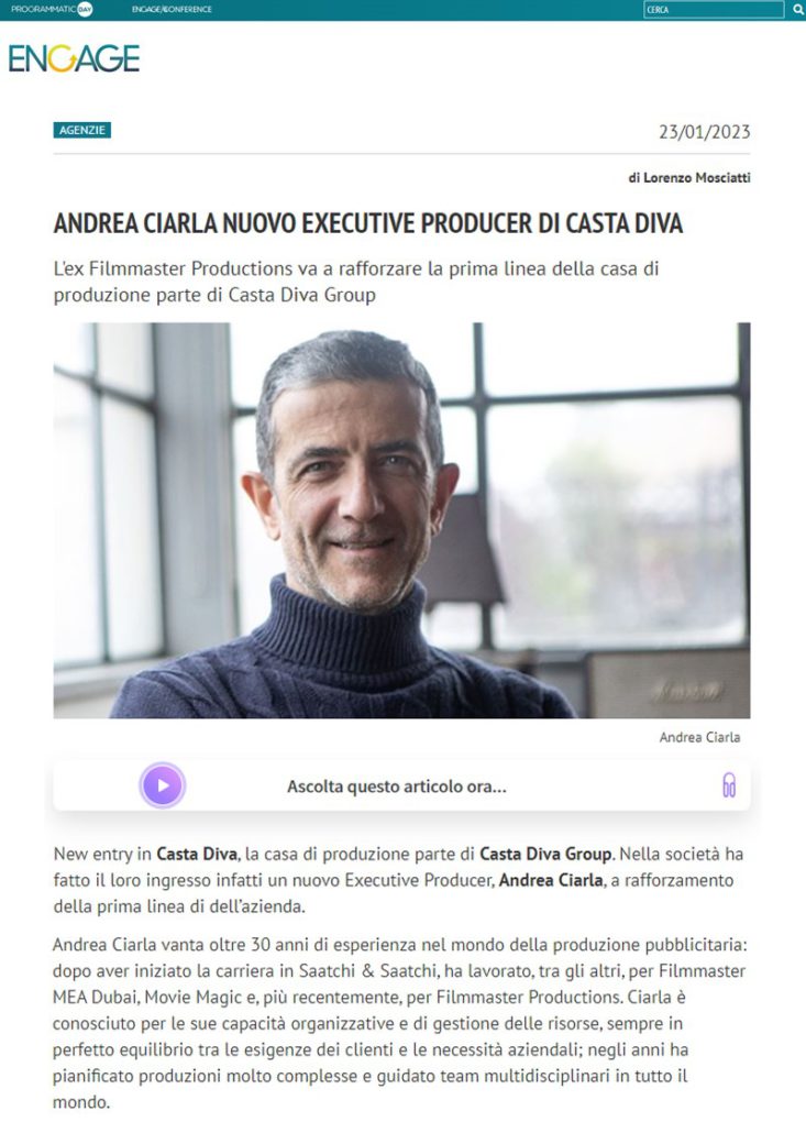 Andrea Ciarla nuovo Executive Producer di Casta Diva