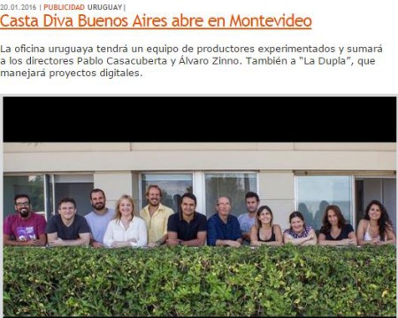 Casta Diva inauguró una nueva oficina en Montevideo, Uruguay. Cuenta con un equipo de productores experimentados y con reconocidos y talentosos directores uruguayos como Pablo Casacuberta y Álvaro Zinno. También, con el objetivo de apuntar al mercado Digital, se suma “La Dupla”.