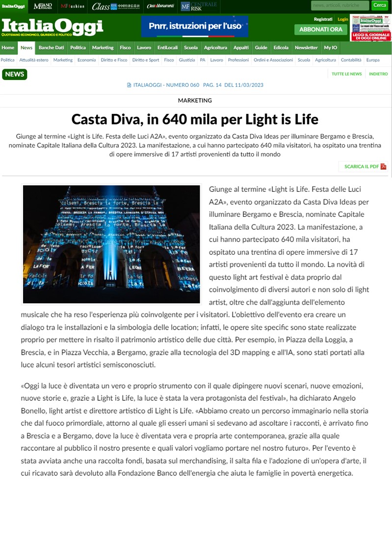 Casta Diva, in 640 mila per Light is Life
