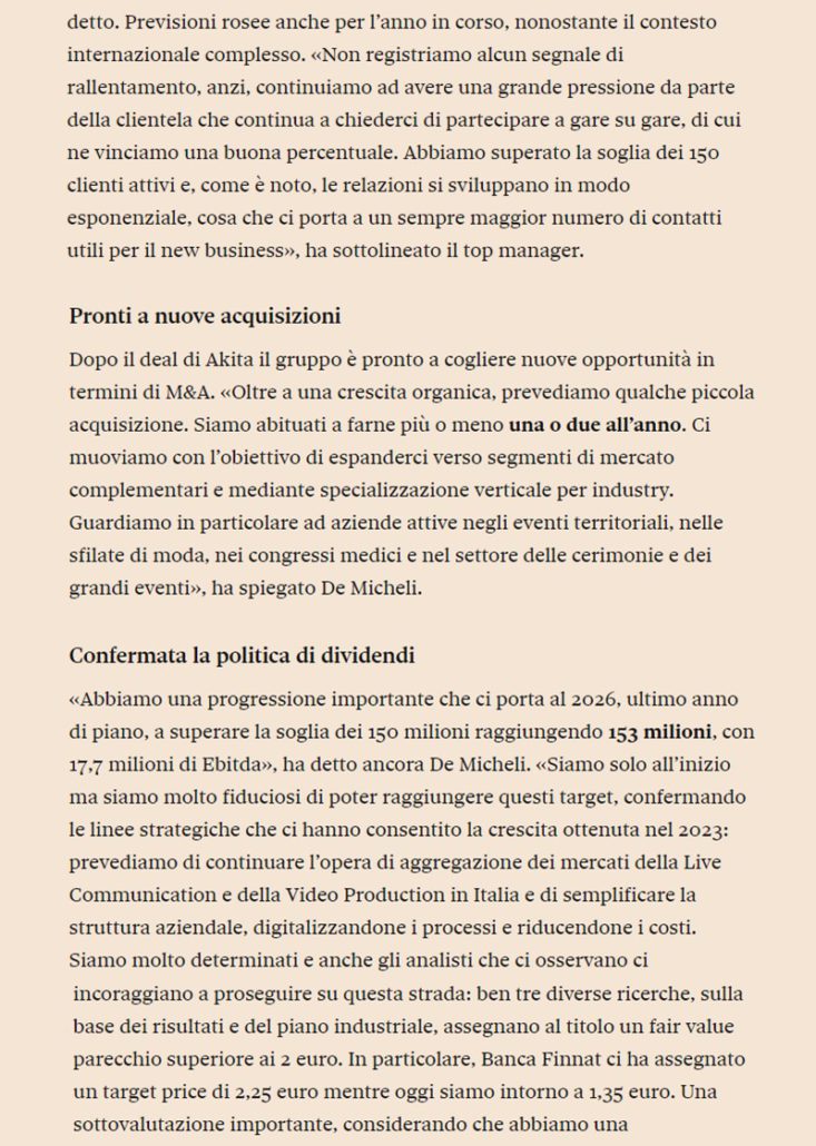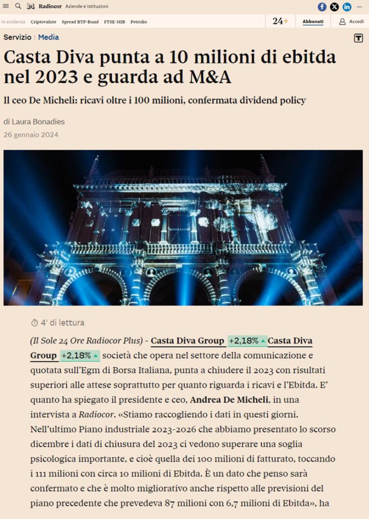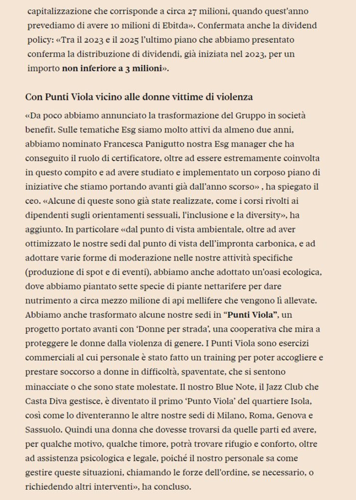 Casta Diva punta a 10 milioni di ebitda nel 2023 e guarda a M&A