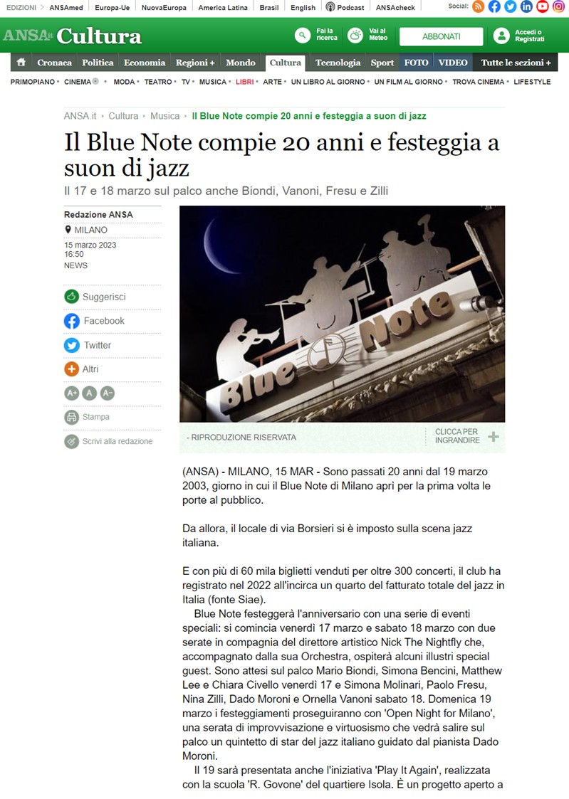 Il Blue Note compie 20 anni e festeggia a suon di jazz