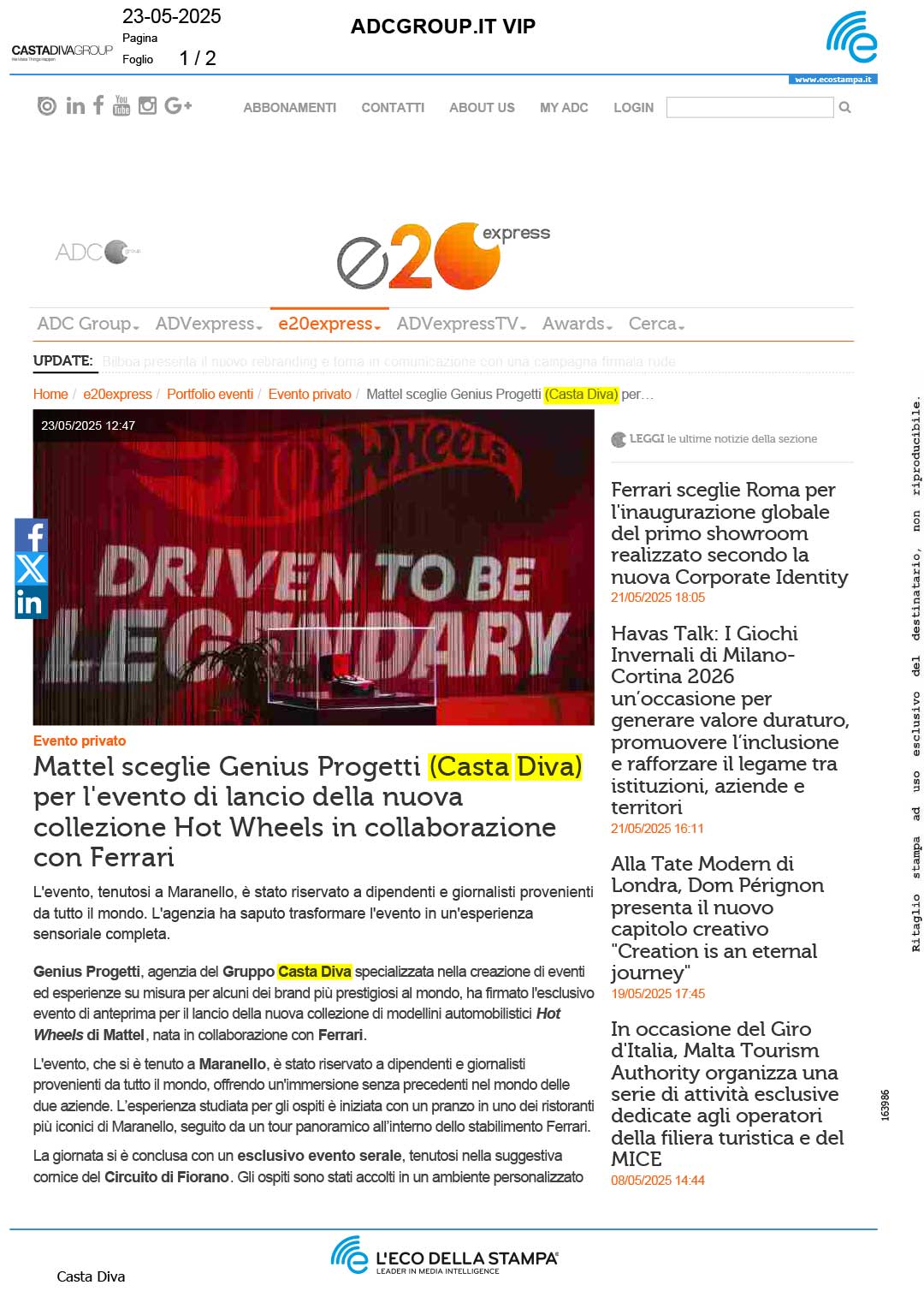 Mattel sceglie Genius Progetti (Casta Diva) per l’evento di lancio della nuova collezione Hot Wheels in collaborazione con Ferrari