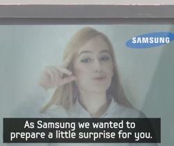 Infine il taxista, che lo accoglie sempre utilizzando la lingua dei segni, lo conduce davanti a un totem interattivo; sullo schermo compare una ragazza che finalmente fa chiarezza a Muharrem:Samsung l’ha scelto come testimonial per lanciare Samsung Duyan Eller, un video call center per aiutare i non udenti.